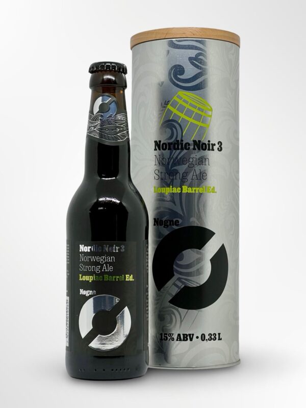 Nordic Noir 3 Loupiac Barrel Ed has aged in dessert wine barrels from Bordeaux. This beer is based on premium Norwegian ingredients and traditional Norwegian brewing techniques. Floor malted barley from Jæren, honey and juniper from Brekkestø, kveik from Voss and water from Grimstad.